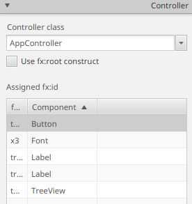 - δήλωση του στοιχείου με τον σωστό τύπο ως μεταβλητή κλάσης και με όνομα που να ταιριάζει ακριβώς με το fx:id